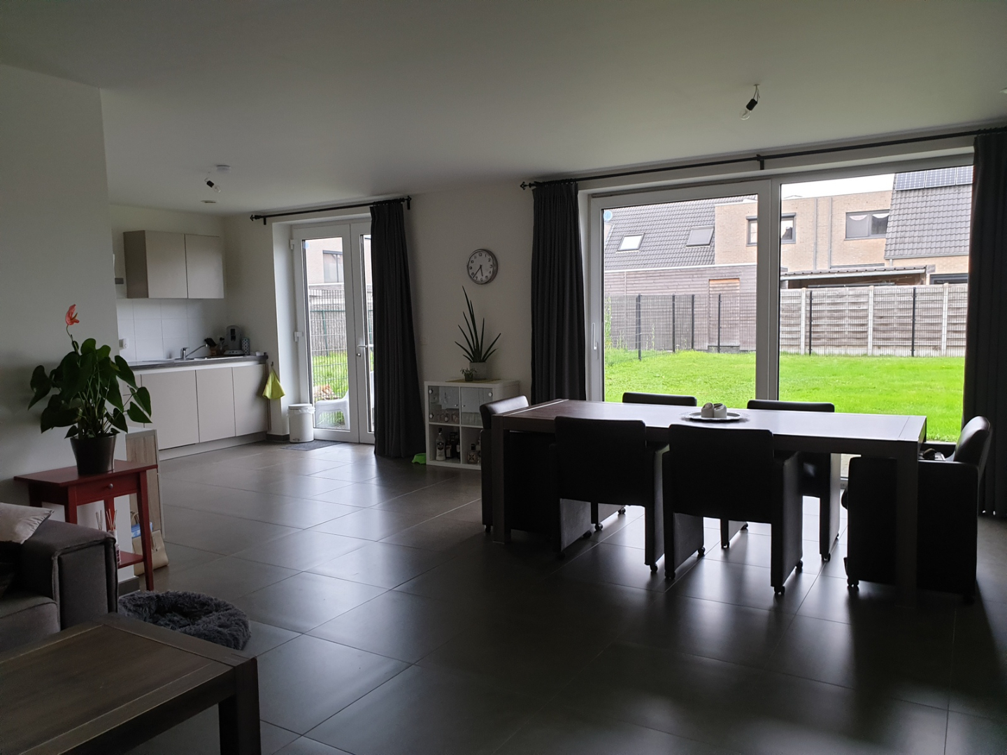 Deze passiefwoning ligt aan de rand van het centrum en nabij de R4 en bidt zodoende een goede verbinding richting Gent, Brugge en Rijsel. Ze omvat een inkom met gastentoilet, lichtrijke woonkamer met zicht op de afgesloten tuin met terras. Er is een open, ingerichte keuken. Via de aanpalende berging is de garage en oprit bereikbaar. Op de verdieping zijn er 3 slaapkamers, badkamer, nachttoilet en tot slot een ruime bergzolder. Deze woning betreft een passiefwoning met uiterst laag energieverbruik als gevolg van de intensieve isolatie, 3-dubbele beglazing, luchtdichtheid, warmtepomp, systeem-D ventilatie, .. De woning is voorzien van 24 (!) zonnepanelen met een verwachte jaarproductie van ca. 5.640Kwh. Bij aanvang van de huurovereenkomst wordt een leveringscontract met maandelijkse provisie afgesloten van 85,31 euro/maand BTW inbegrepen. Hierdoor geniet u als extra troef ook nog eens van substantieel goedkoper electriciteit in vergelijking met een klassieke energieleverancier.